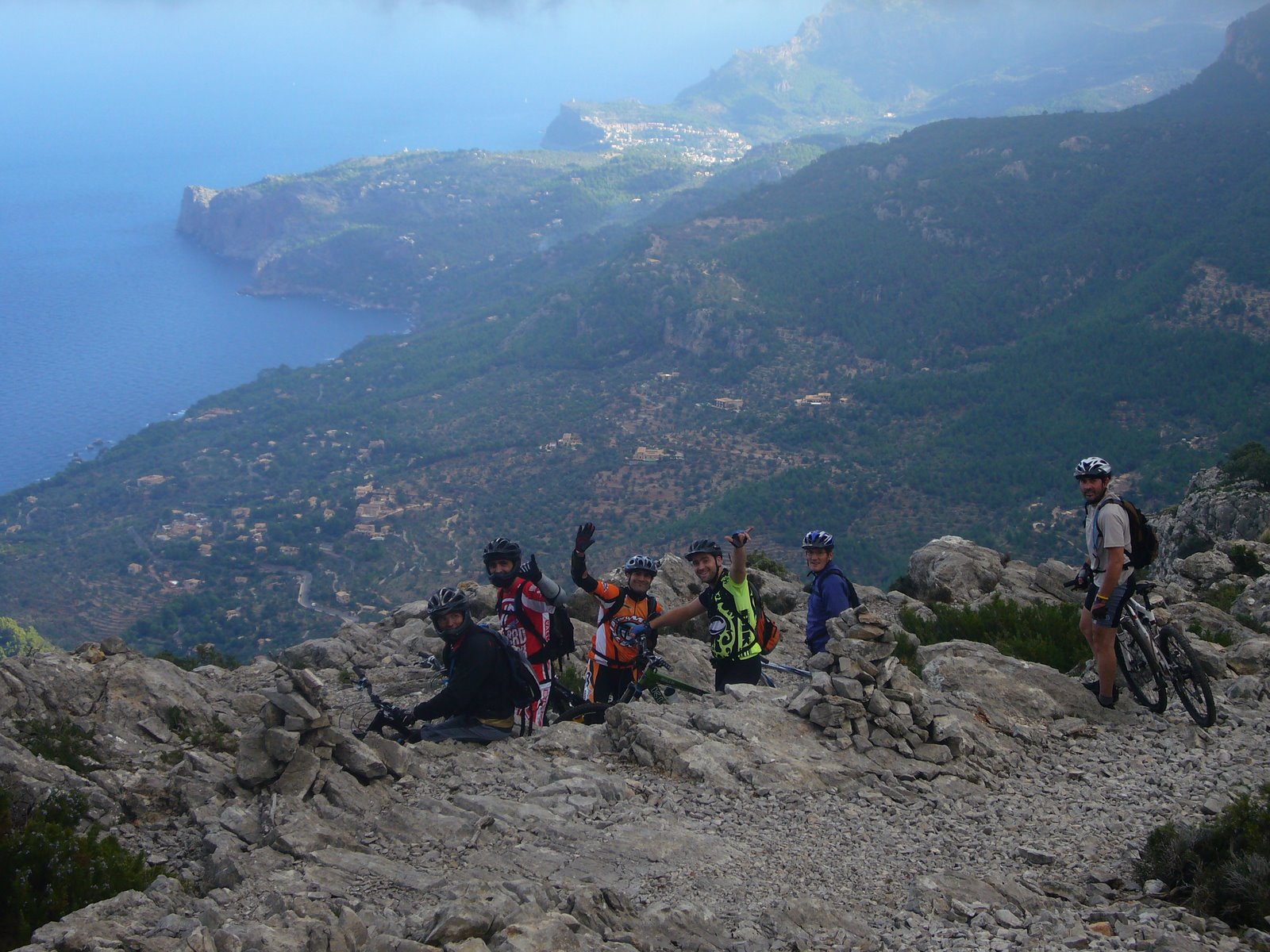 Estaba programada desde hacía tiempo por Xisco y no me la quería perder. Ya la califiqué en su momento de rompepiernas y no me equivoqué, a juzgar por las sensaciones que tengo ahora mismo. En la anterior hubo más calor, desde luego, pero el terreno no cambia. Ellos habían realizado una encuesta para decidir el método de transporte y han elegido tren. Yo también. Íbamos a encontrarnos en la estación de Alaró (o Consell, que está un poco más cerca) a las ocho, más o menos. Solo tendría que esperar unos diez minutos. Al final han venido muchos (me sería imposible repetir el nombre de todos ellos). Salimos y al llegar a la carretera nueva hemos ido a recorrer un tramo de la calzada romana que no conocía. Parecía que no hacía mucho que la hubieren limpiado de vegetación y aún conserva varios tramos empedrados. Ya en Alaró hemos ampliado el grupo con el resto de palmesanos que nos esperaban. A saber, Pepefz, Bonus, Pepe Sancho y Mar, más Crop. Pelotón en pleno ya directos a las rampas de Ses Artigues; y vaya rampas. Me he quedado asombrado de lo bien que rodaban los cambios, sin ningún desajuste, por lo que he podido empezar a subir bastante confiado. En algunas rampas se han formado melés rompiendo el ritmo, ya de por sí bastante cansino. La pega de este camino es que lo peor está al final y cuesta muchísimo hacerlo de un tirón; cosa que no creo que haya hecho nadie, entre recuperaciones, fotos o por cualquier otra causa. Quizás Mar, pero tendría que confirmarlo.