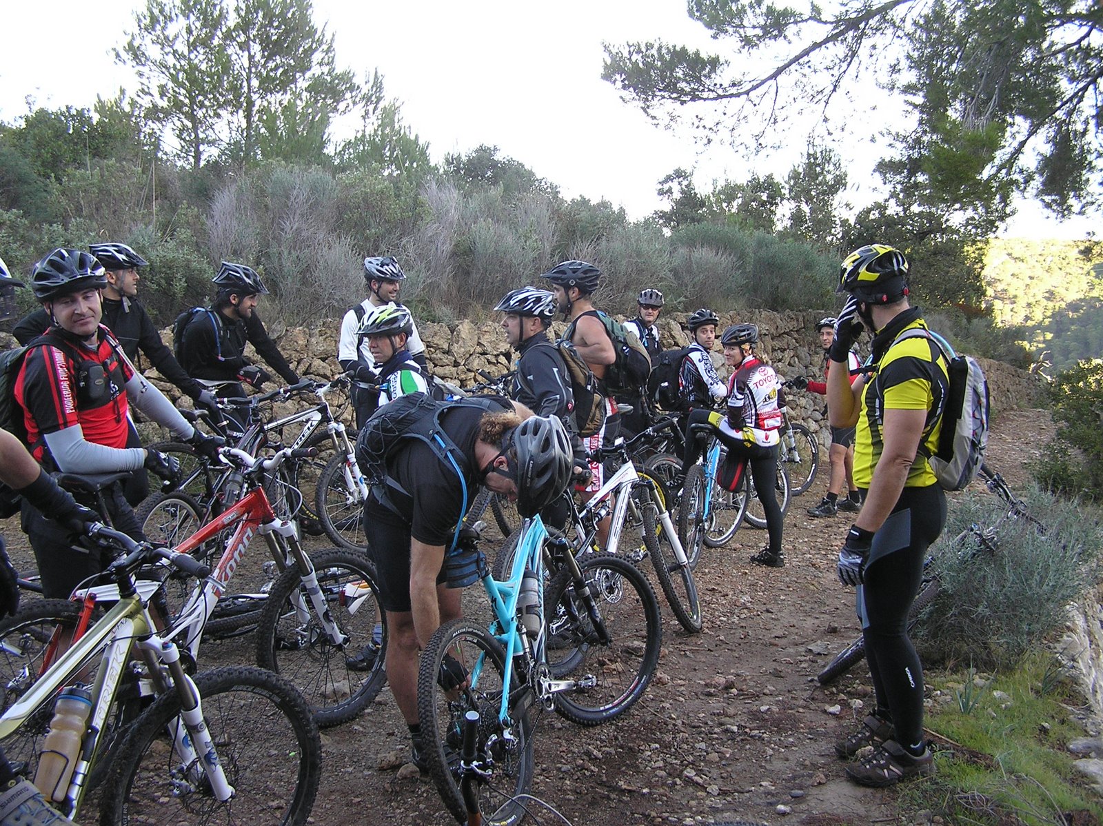 Había visto el mensaje de Wiro muy temprano pero a la hora que salí ya estaría él de vuelta aunque confiaba en encontrarme con alguien por allí, aunque solamente fuera para picarme. Pero que va! Empezó a llover en Establiments, bueno, en honor a la verdad no creo que pasara de una ligera llovizna, ligera pero insistente, de esas que te van calando poco a poco aunque con más calor que frío. No vi a nadie montado, solamente una pareja con un crío pequeño a becoll al cual le extrañó mucho que alguien fuera en bicicleta por allí. El camino, precioso, sobretodo la parte de arriba, la más agreste, con esa humedad flotando en el ambiente. Lo único que no me gustó es que tuve que volver a subir a plato pequeño (y ya van dos seguidas) y eso no es buena señal. El constipado me ha quitado un punto de fuerza que me cuesta recuperar.