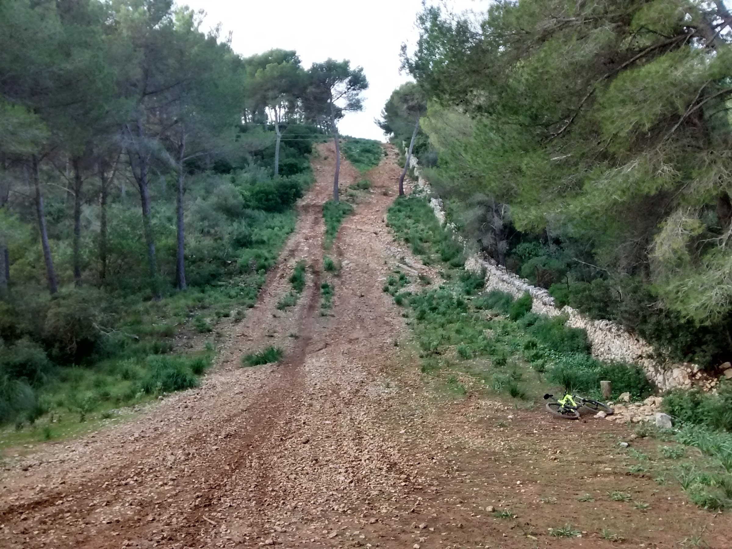 Típica, típica ruta dominguera, donde se sale un poco más tarde de lo habitual y se vuelve también antes. Creo que me encontré a Pina y a otro compañero en las vías pero ellos se iban a llanear por la costa y preferí seguir con mis planes de meter algo de desnivel en el zurrón, tocar algo más de tierra en definitiva. Hay una tienda de bicis en la calle Salvador Dalí y había allí una concentración numerosa de bikeros por lo que supuse que habían organizado una quedada pero como pasaba yo por la acera de enfrente no reconocí a nadie, igual me los encontraba después por algunos caminos. No tardé en meterme por el bosque de Son Puigdorfila para recortar por algunos senderos y empezar a mover las suspensiones. Salí por la rotonda de los militares y tiré hacia Gènova para subir al monumento y seguir por la pista principal hacia el coll des Pastors, por la cantidad de coches aparcados auguré bastante compañía por esos lares. Ciclistas solo algunos a los que pillé a mitad de camino y novatos por las pintas y hechuras, a uno sobre todo le costaba bastante superar las dificultades de la ruta.